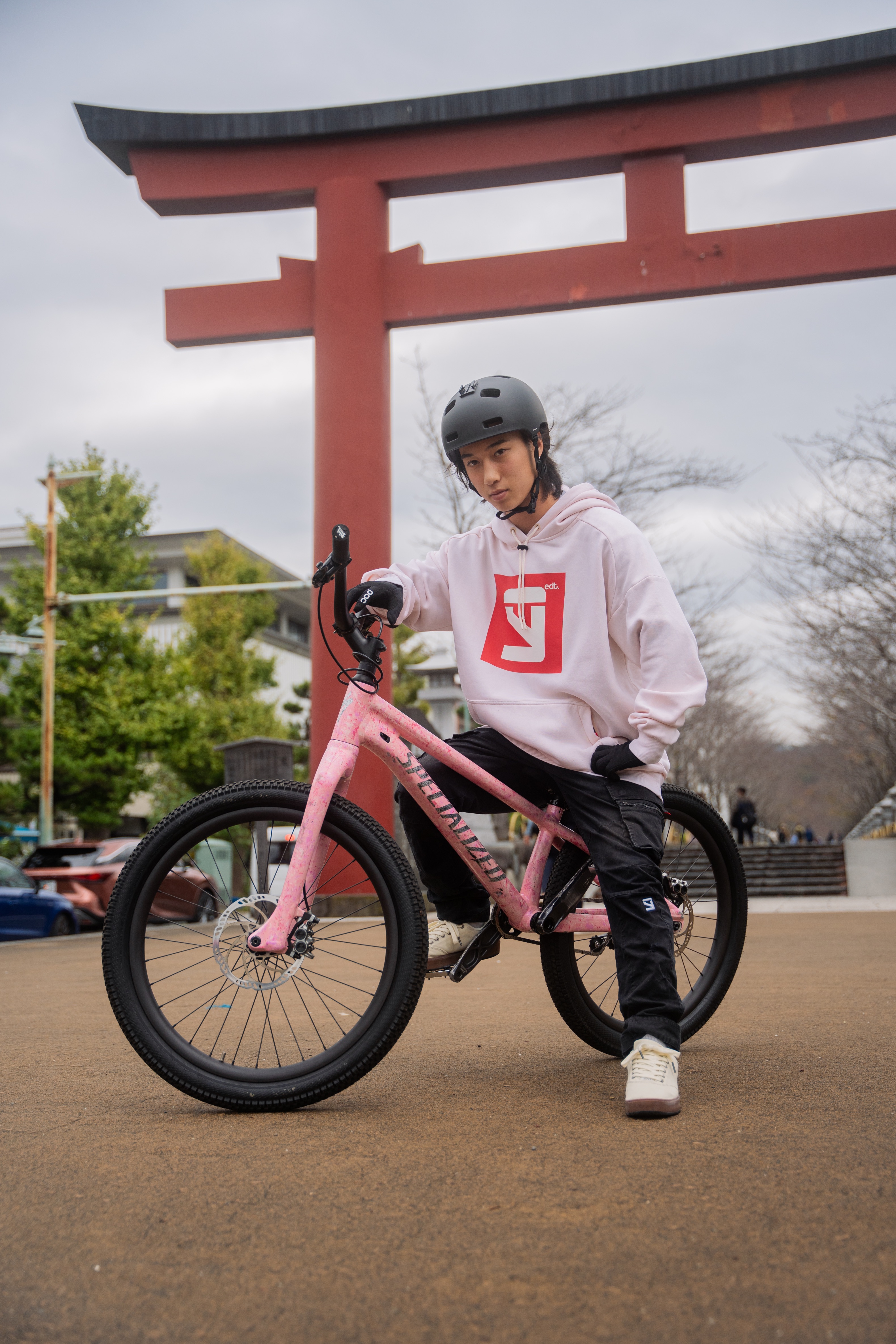 ストリートトライアルとは、「BMXストリート」のカルチャーや派手なパフォーマンス要素と、「バイクトライアル」の自然地形を障害物をクリアしながら駆け抜ける走破性を融合したアクロバティックな競技。アジアで2人のSpecializedグローバルアンバサダーの1人として活動しており、Specialized初のストリートトライアルライダーのため、特注モデルで"世界に一台”のバイクに乗る。